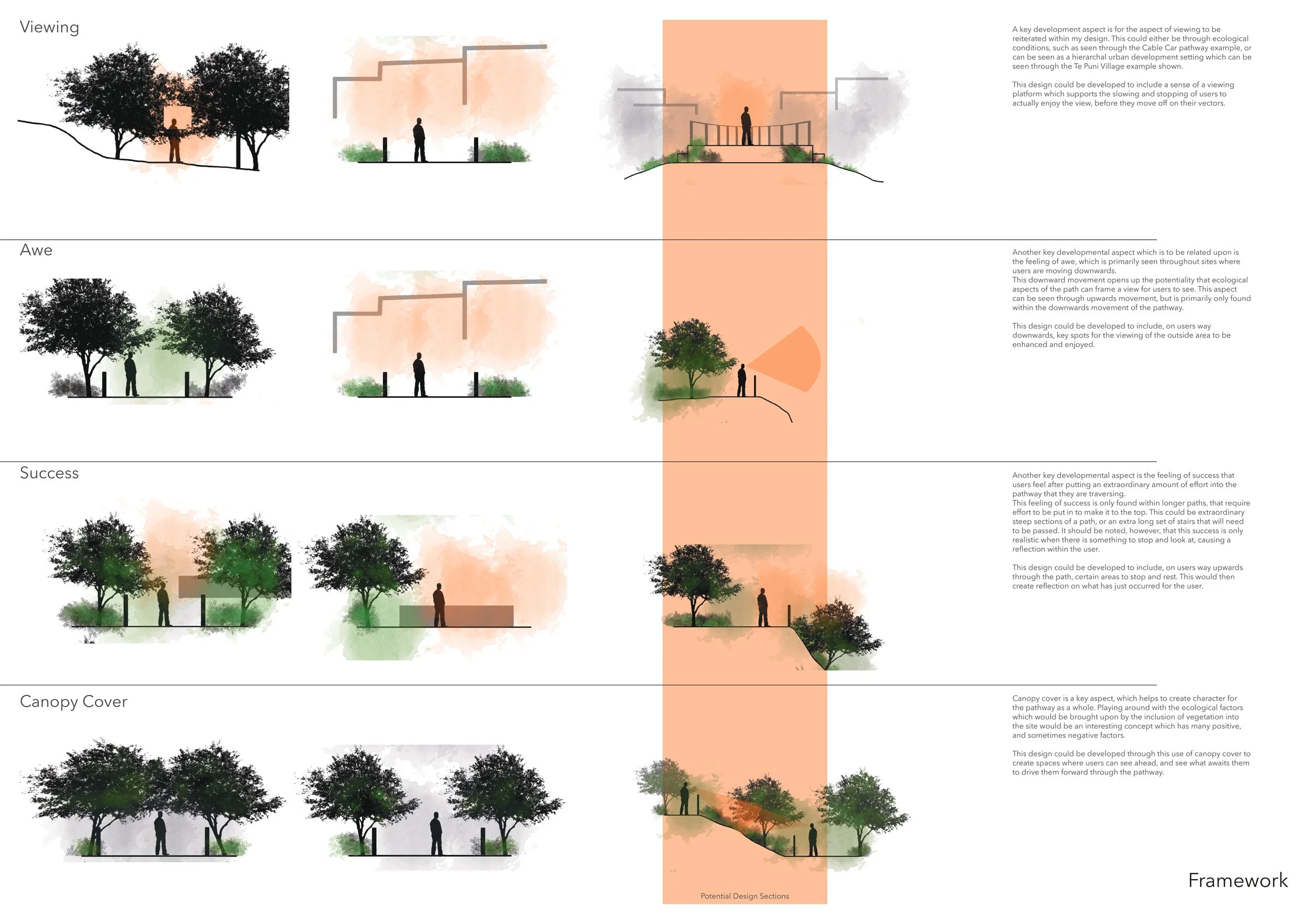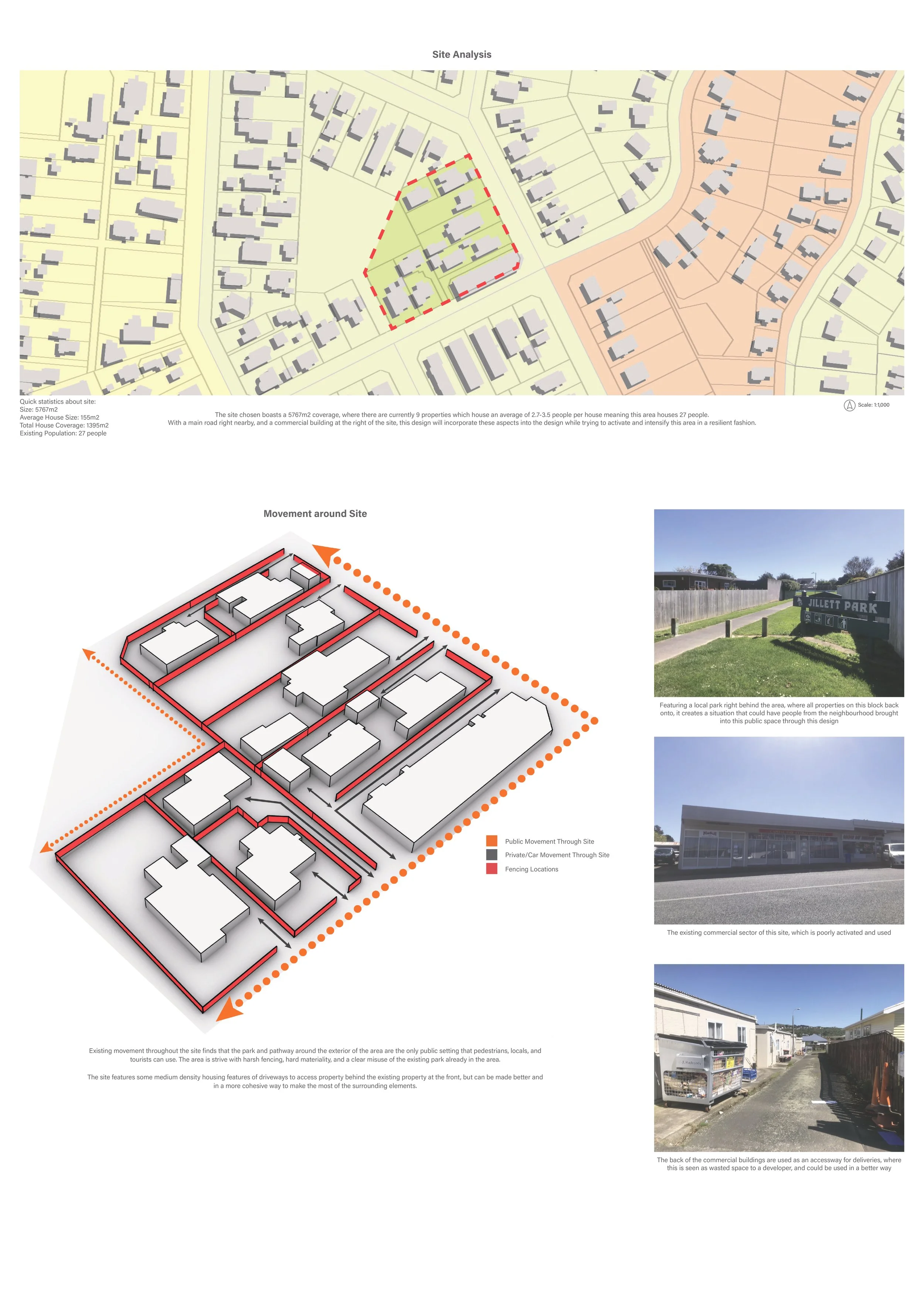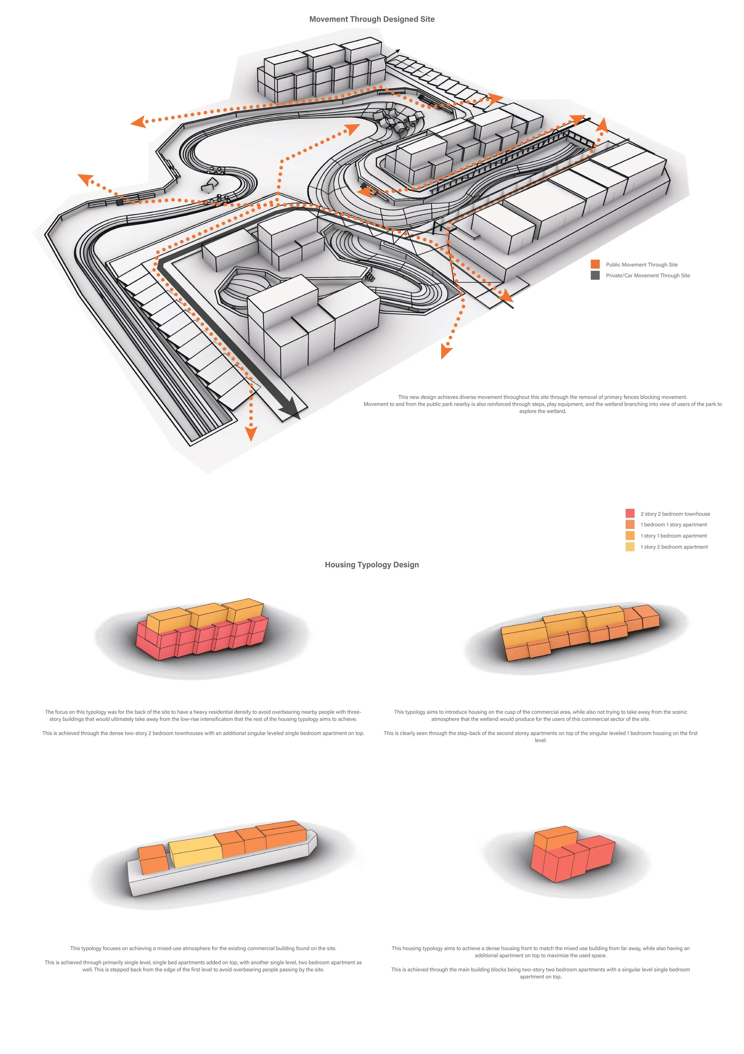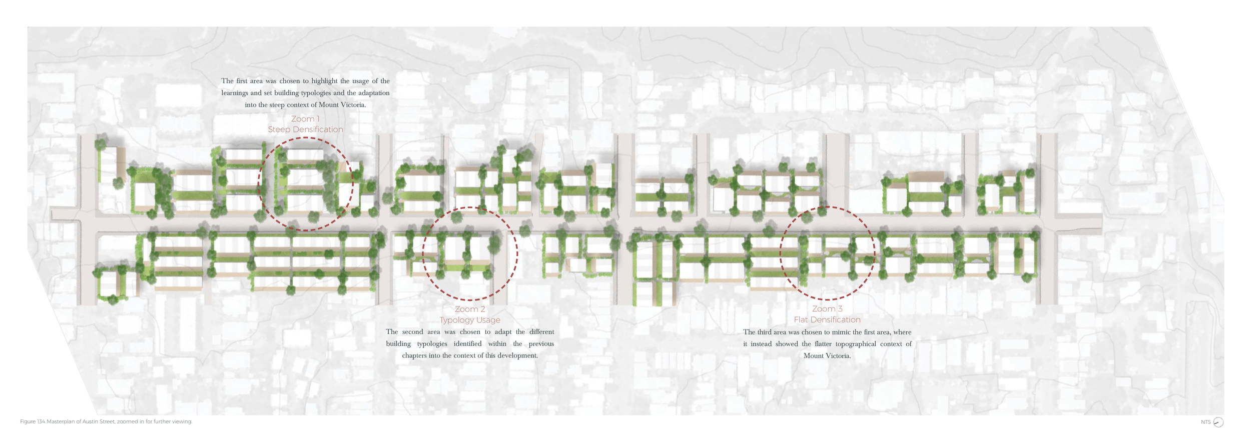 The culmination of my time at university concluded with a thesis exploring the role of landscape architecture in medium-density housing within Wellington, New Zealand. As the work was developed as a complete body of research, individual elements are not shown here to preserve the integrity of the project.